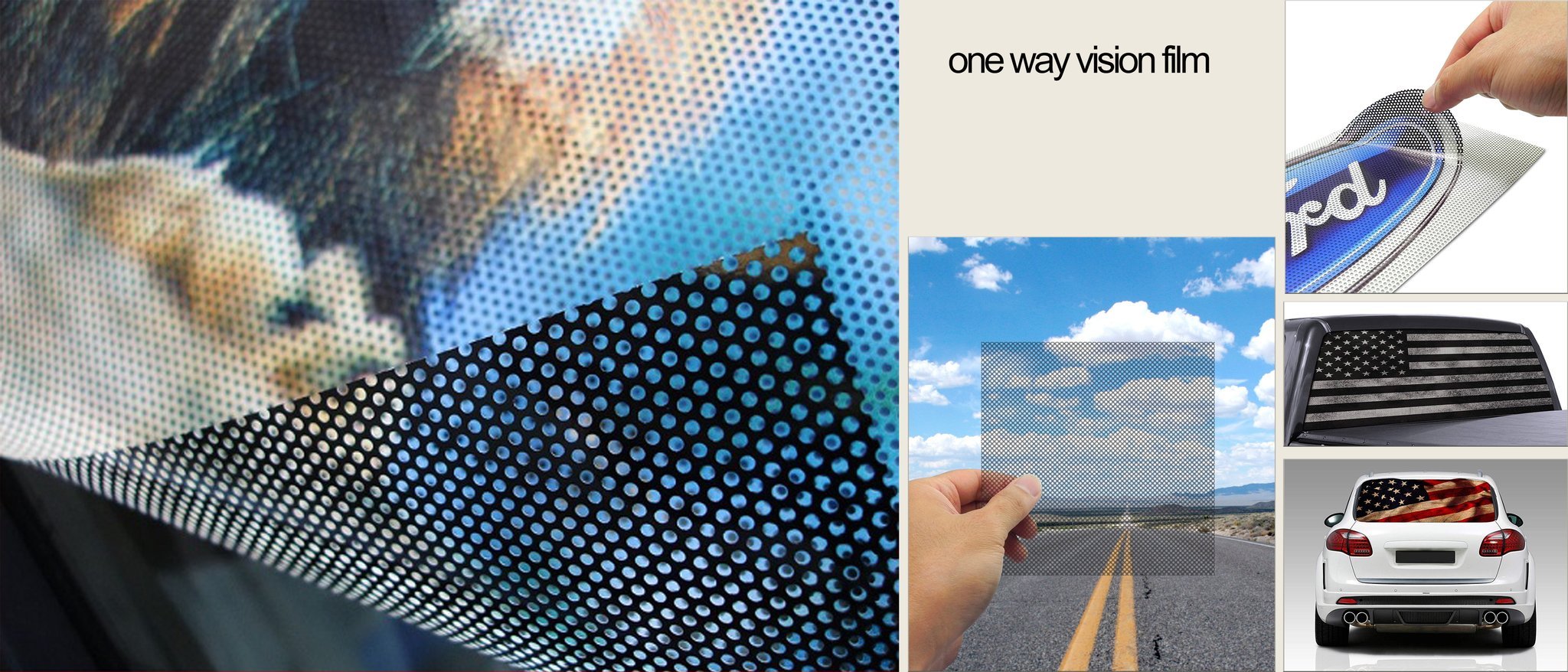 Το ONE WAY VISION είναι ένα αυτοκόλλητο που έχει που μικρές τρύπες σε όλη του την επιφάνεια. Κολλιέται αποκλειστικά σε τζάμια. Το μεγάλο του πλεονέκτημα είναι ότι αφού κολληθεί επιτρέπει σε αυτόν που βρίσκεται εσωτερικά του χώρου να βλέπει έξω. Ιδανικό για παμπρίζ αυτοκινήτων, Τζαμαρίες γραφείων, χωρίσματα εσωτερικών χώρων.